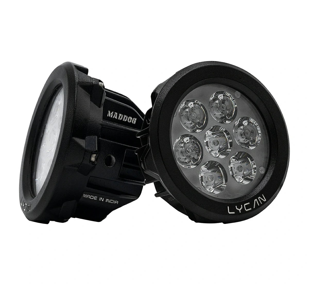 The Maddog Lycan Edition Auxiliary Light features a dual-mode design, allowing independent control of the spot and flood beams. Delivering an impressive 10,800 lumens per pair while consuming just 40 watts each, it offers exceptional illumination with a 60% spot and 40% flood beam pattern. Encased in a sleek black gloss aluminum housing, the Lycan model excels in both performance and aesthetics. Backed by an exclusive 18-month replacement warranty, it guarantees superior quality and reliability.