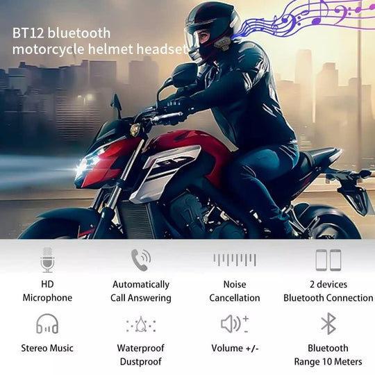 BT12 On-Ear Helmet Wireless Dual Earphone Bluetooth Calling and Music with Mic, (Support iOS & Andriod) Headset Compatible with Almost All Kinds of Helmets