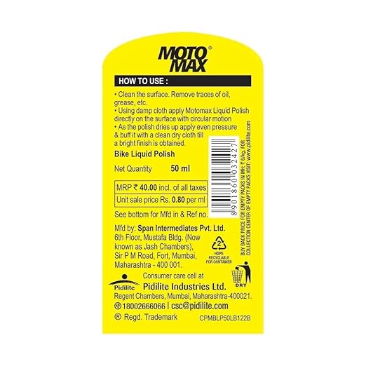 - Pidilite promise- Motomax Brand comes from the house of Pidilite industries , one of the most trusted company in delivering the top quality products for auto, hardware and paintvvvv