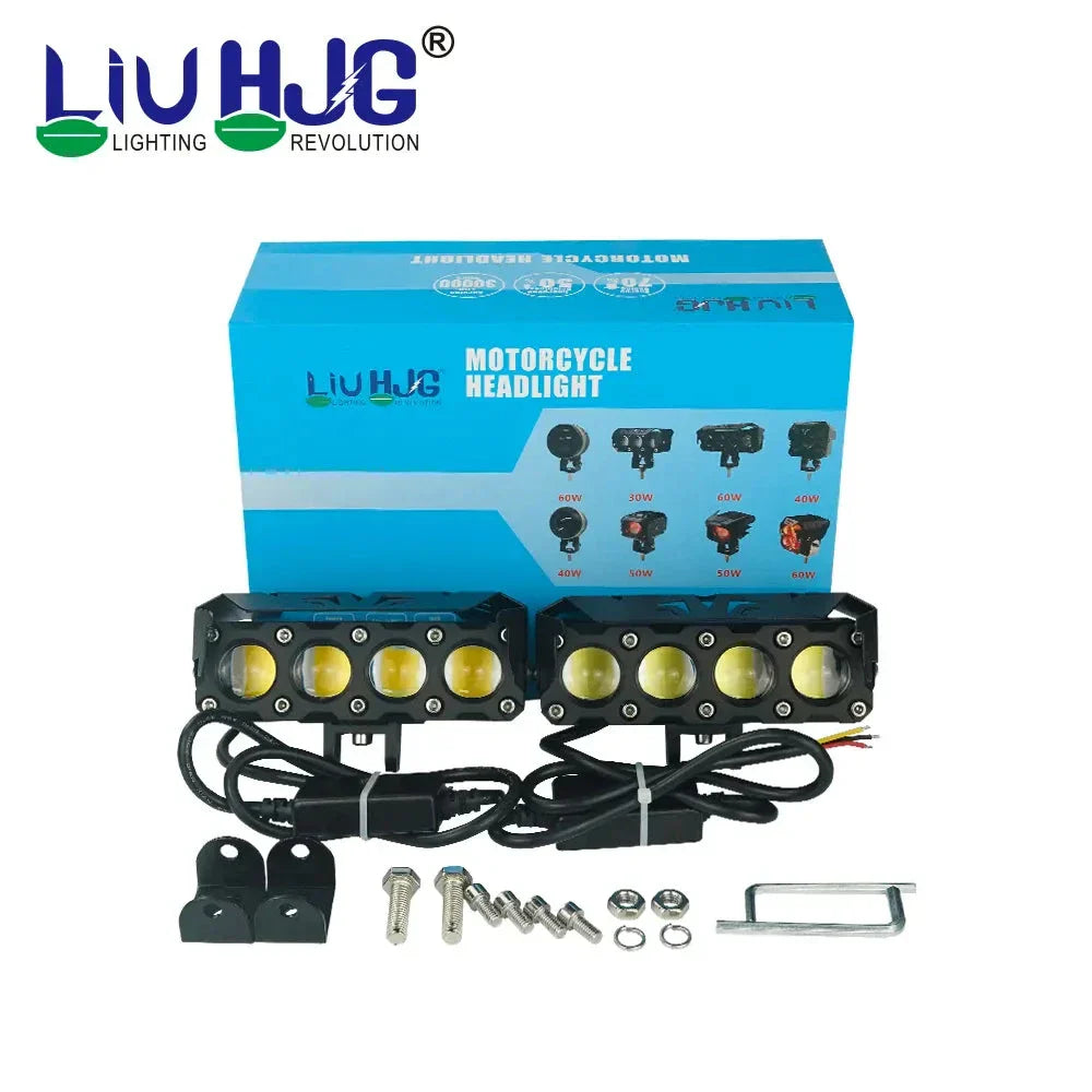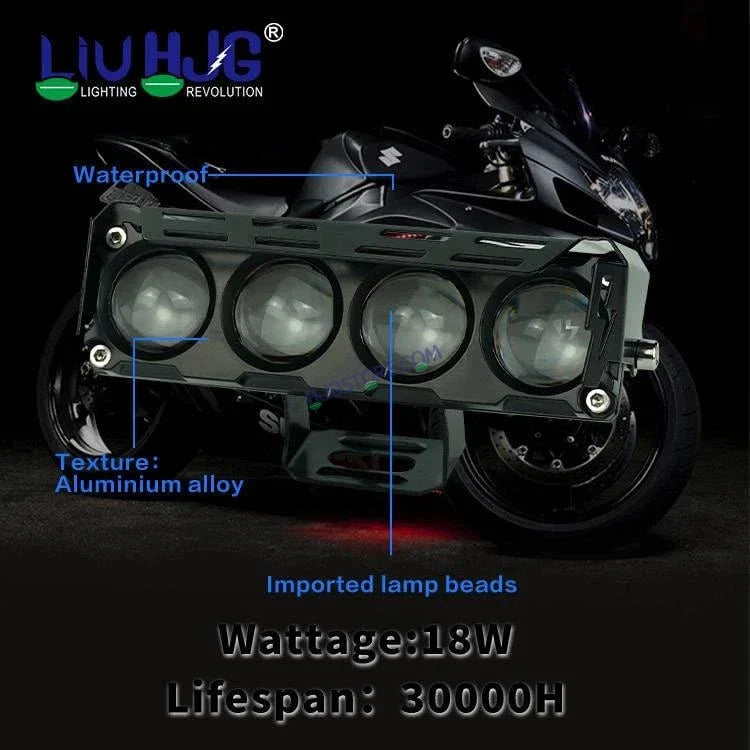 HJG HJG Future Eyes 4 Lens Mega Drive 120W Round LED Auxiliary Light for all Motorcycles with Harness and switch set