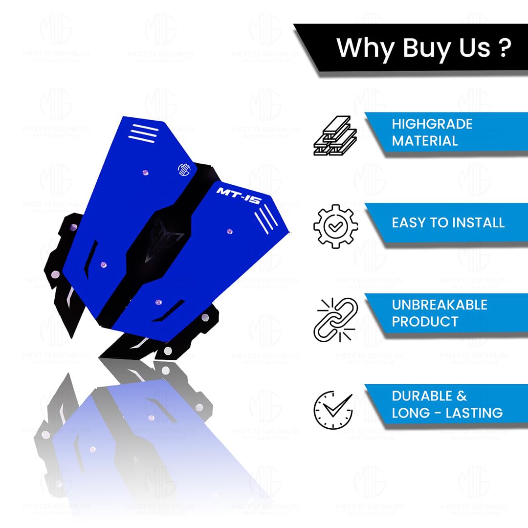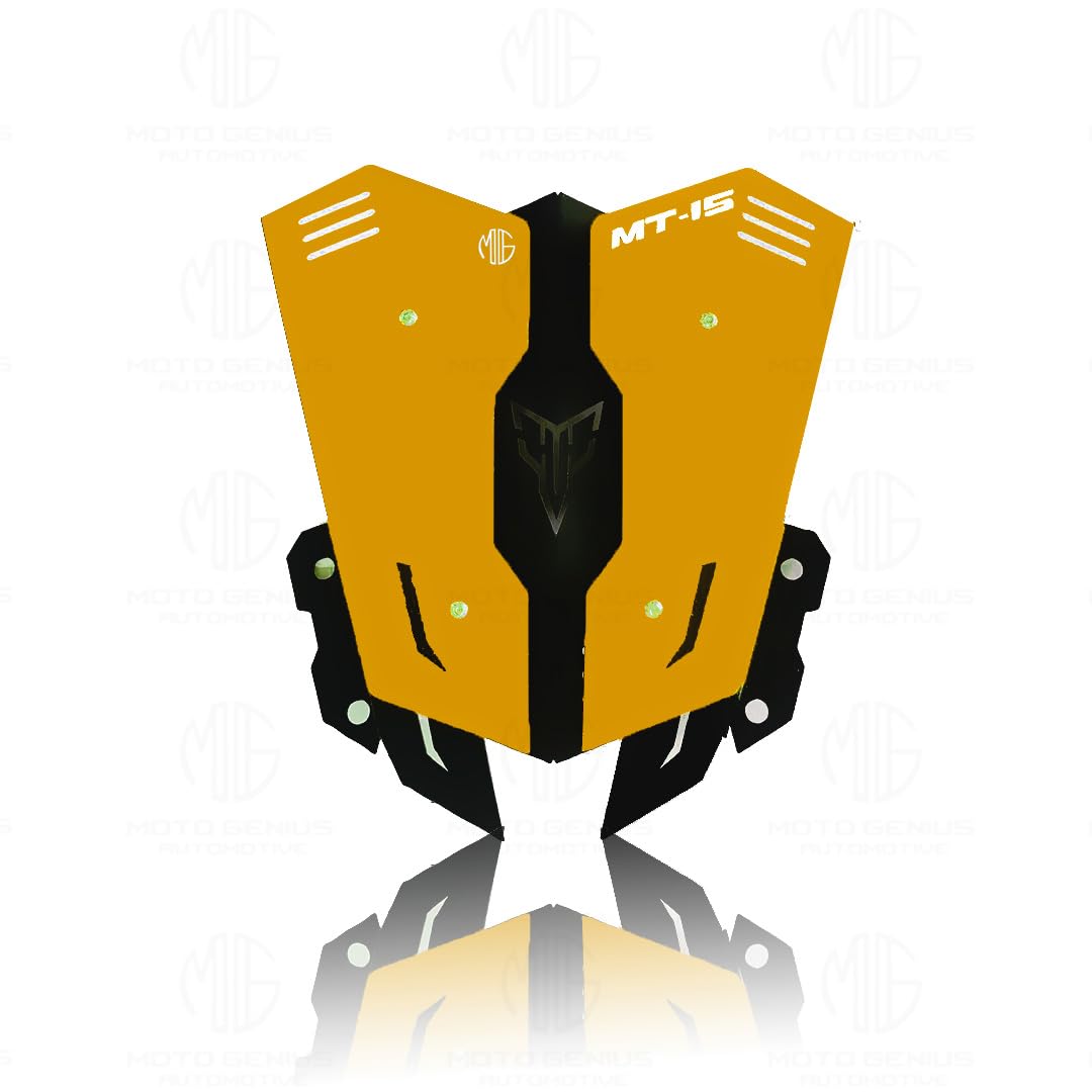MOTO GENIUS Metal Visor Windscreen Windshield Deflector for MT 15 | Heavy Quality Flyscreen with Mount for Motorbike | Wind Sheld Protector (Grey Black)