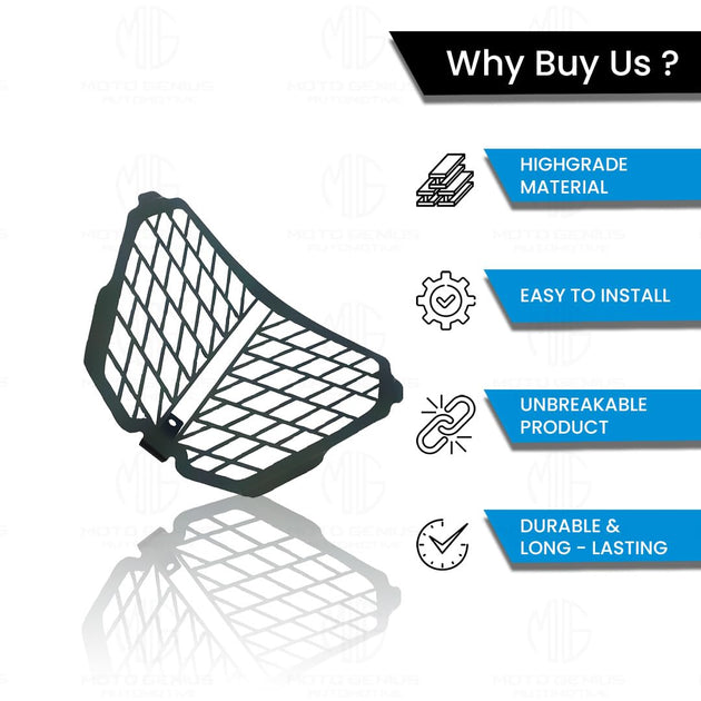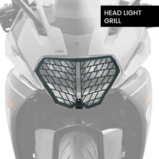 MOTO GENIUS Front Headlight Grill Guard for KTM RC | Durable Metal Protective Head Light Frame Protector | Compatible with RC 125/200/250/390 (Black)