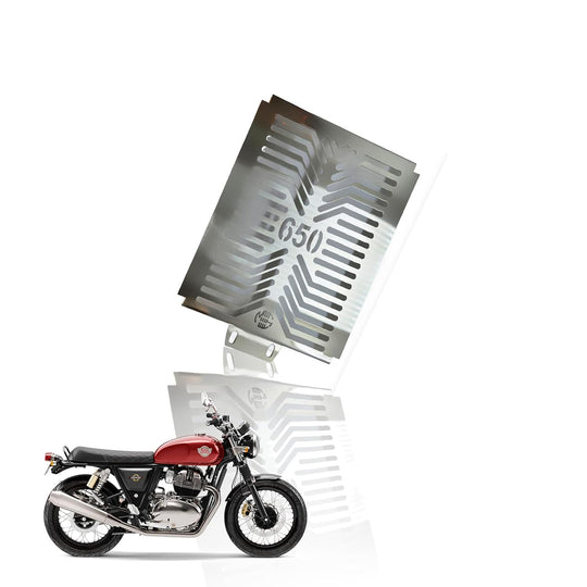 MOTO GENIUS Radiator Guard for RE Interceptor | Durable Stainless Steel Protector |Essential Accessory for Motorcycle Radiator Protection (650 Logo)