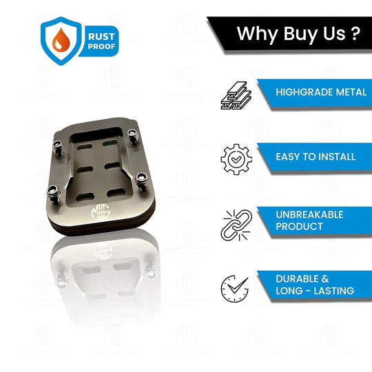 MOTO GENIUS Stainless Steel Side Stand Extender for RE Interceptor | Heavy Duty Parking Support and Stability Enhancer (Silver)