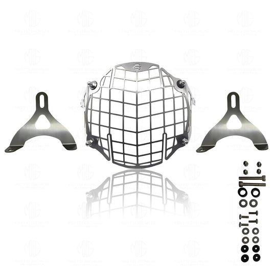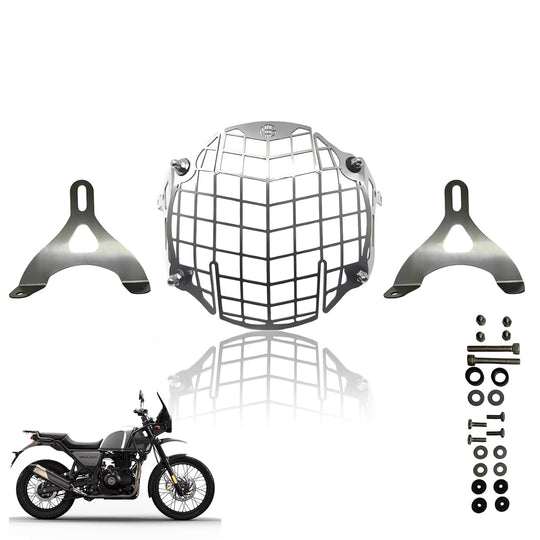 MOTO GENIUS Front Headlight Grill Guard for RE Himalayan BS3/BS4/BS6/Scram Motorbike | Durable Metal Protective Head Light Frame Protector (Line Design)