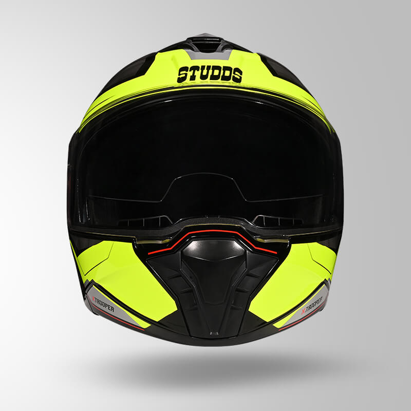 Introducing the Trooper DV D2 Hellcat Helmet: Your ultimate gear for the road. Featuring a flip-up full-face design and available in M, L, and XL sizes, it ensures a comfortable fit for every rider. Equipped with a hypoallergenic liner and quick-release chin strap, it prioritizes your comfort and convenience. Navigate any lighting condition effortlessly with its silicone-coated scratch resistant visor and an extra sun visor. With a high-impact outer shell and ISI certification, safety is paramount. Ride with confidence and style with the Trooper DV D2 Hellcat Helmet.