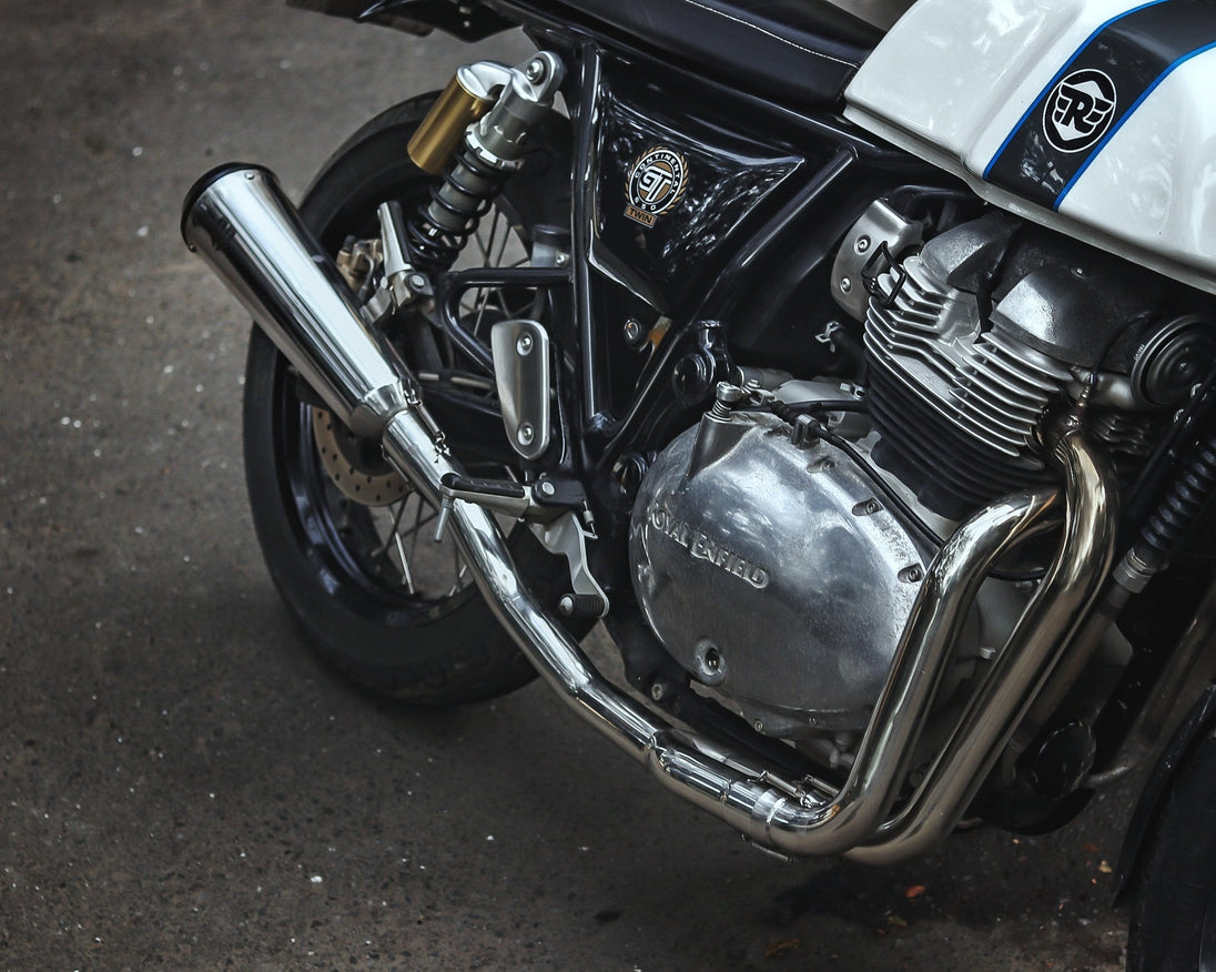 Ignite your Royal Enfield Interceptor 650 and Continental GT 650 with the SS MOTO CORP 2 x 1 Full System Exhaust, equipped with bold FAT Can. This is a true performance upgrade for adrenaline-fueled enthusiasts who crave lightweight and powerful modifications. Transform your bike into a fierce beast with unmatched performance and a sleek, classic design. Don't settle for average - unleash the full potential of your ride now!